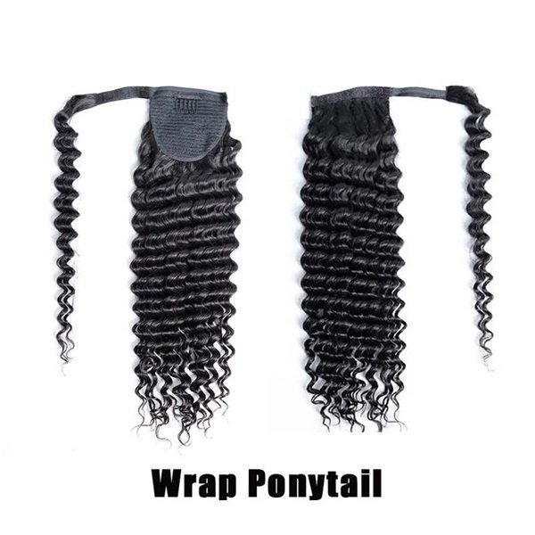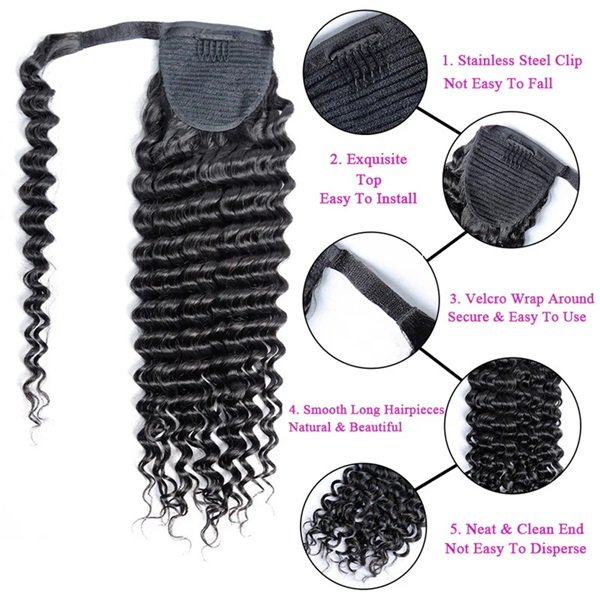 Deep Wave Wrap Around Ponytail with Clip 100% Human Hair